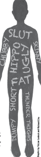 A graphic in the Glenbrook North Torch article about the powerful impact of labels formed from our environment on our personal body image. The article includes various anonymous student self-submitted stories about their experiences facing these direct effects of the cycle of socialization here at GBN.